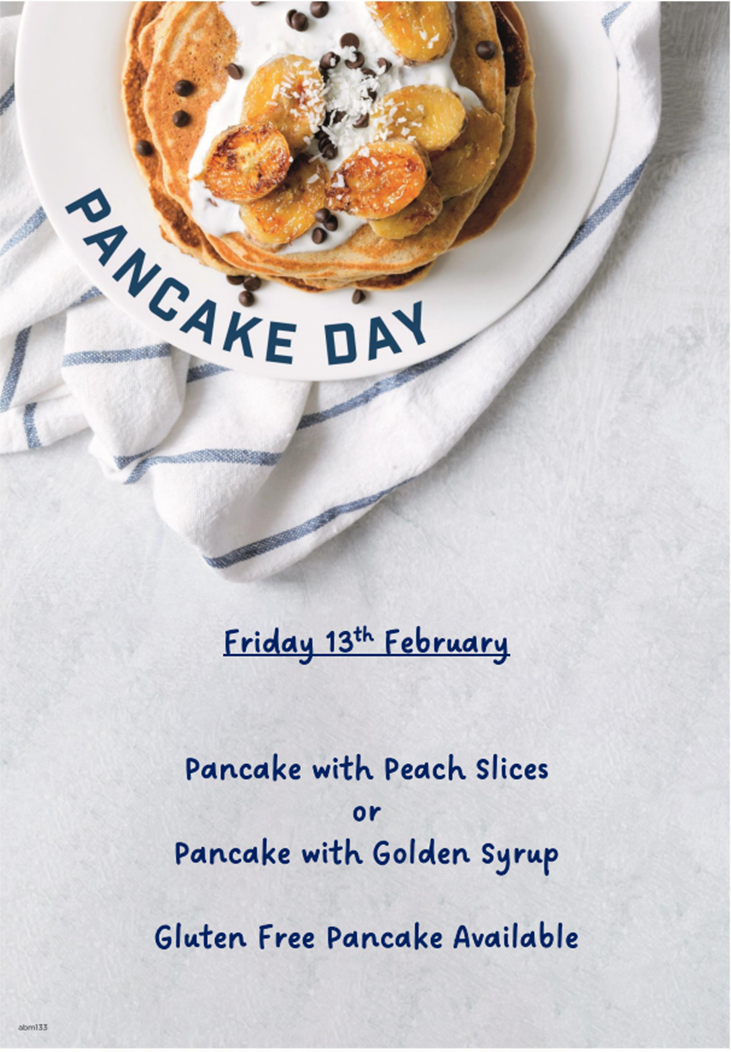 On pancake day we will have the usual main course menu, with pancakes as the dessert option