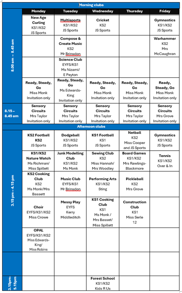 Autumn Term 2025 Club Programme