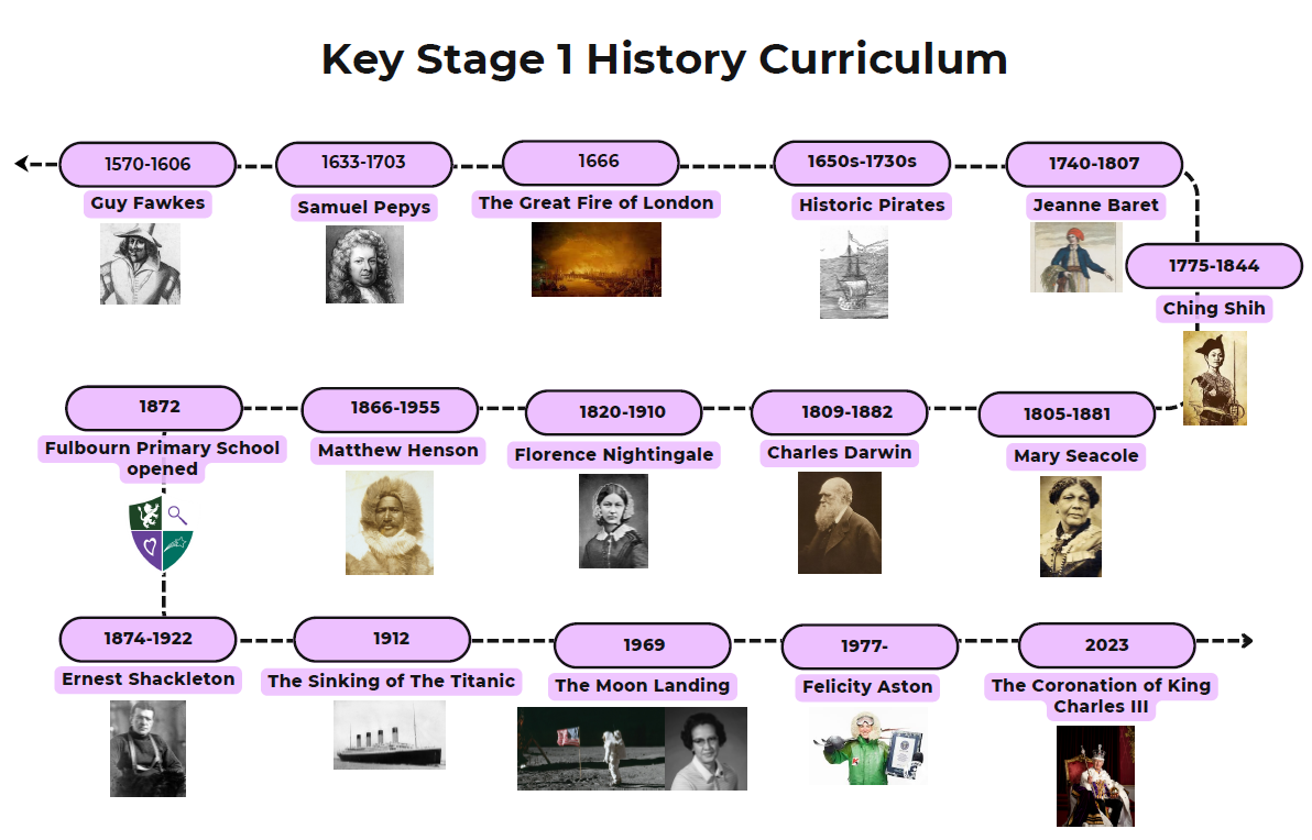 We teach History largely through termly topics and encourage the children to make cross-curricular connections, for example, by adding to time-lines the artists and scientists they study. Children begin by learning about themselves, their families and the history of their locality. As they grow, they learn to use primary and secondary sources, distinguish between the two, and interpret historical evidence. A focus both on increasing knowledge and understanding, the process of historical enquiry (and what it means to work in the way historians work) means that children are able to feel confident in their exploration of the past and begin to understand the process of continuity and change and how the past has shaped the present.